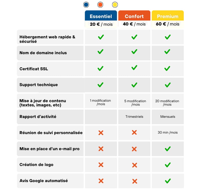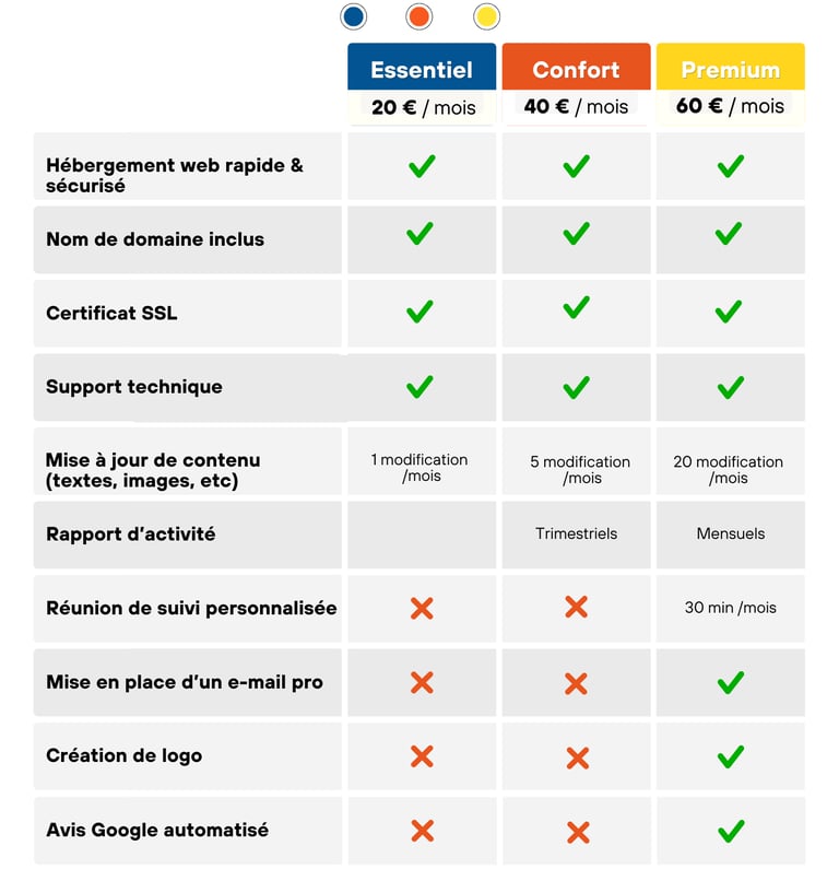 Sans abonnement, toute modification sera facturée (hébergement, modification de texte, image, section)