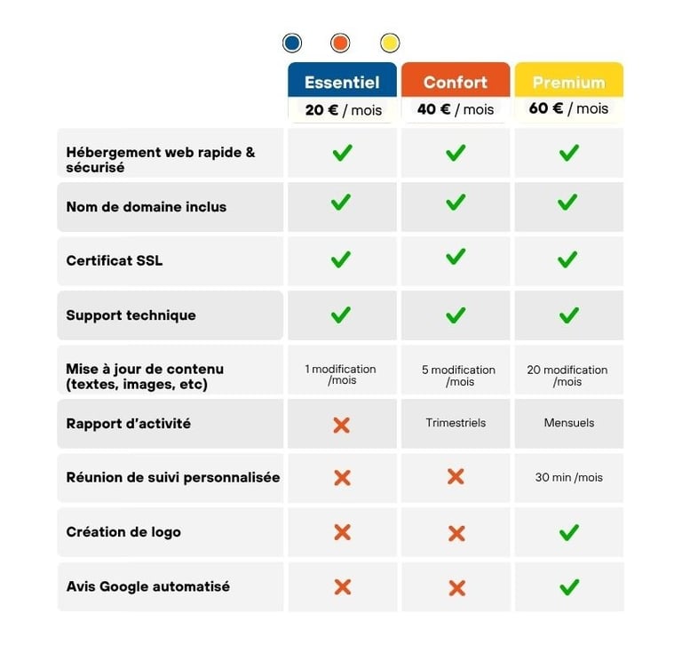 Sans abonnement, toute modification sera facturée (hébergement, modification de texte, image, section)